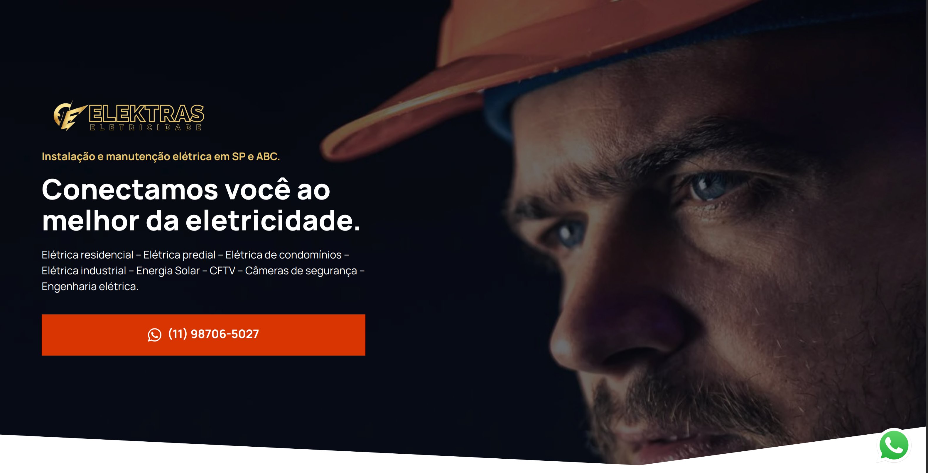 Site profissional e sofisticado para empresa de serviços elétricos em SP e ABC, com design dark moderno, destacando ampla gama de serviços desde instalações residenciais até energia solar e engenharia elétrica.