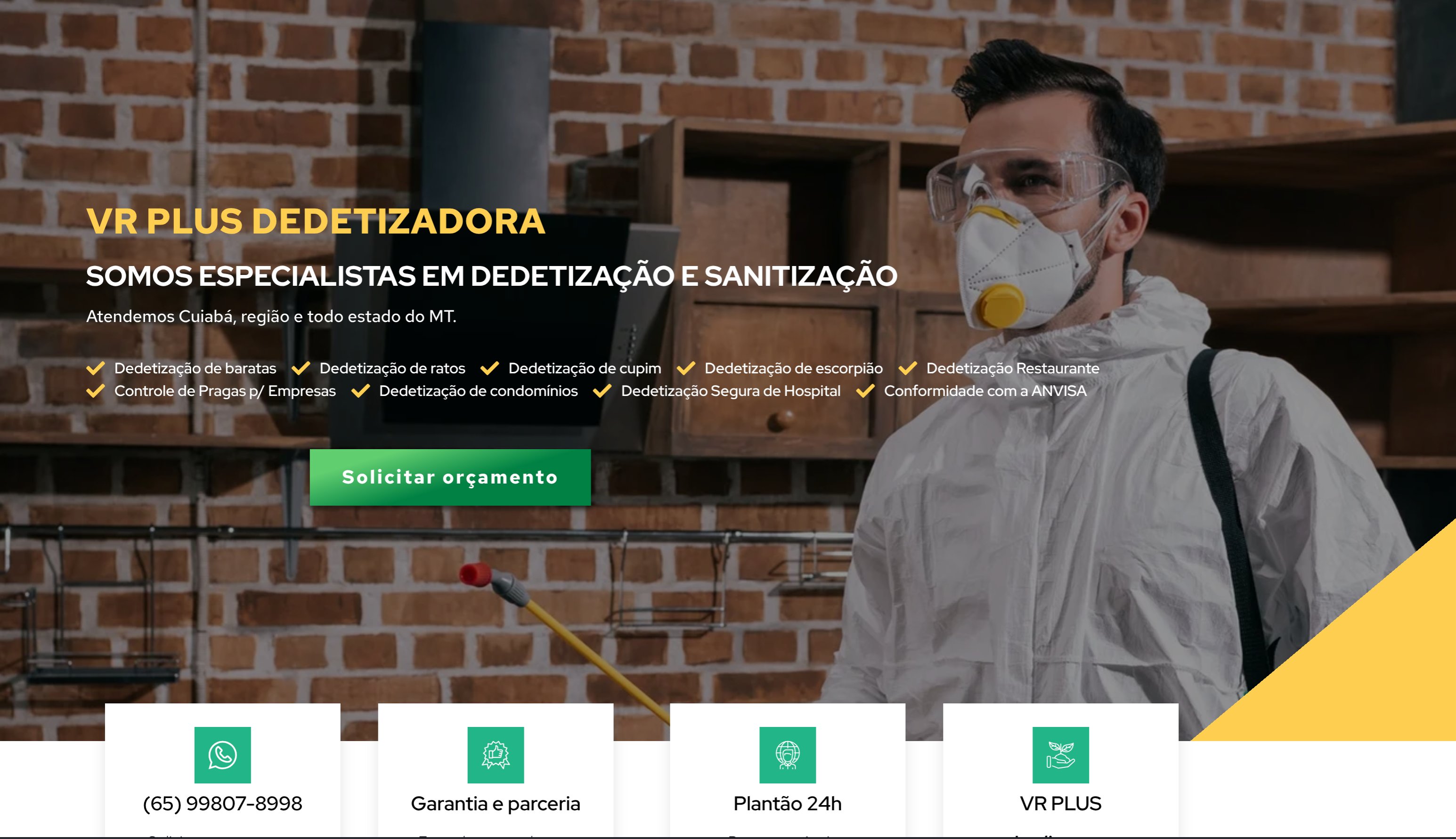 Site profissional para empresa especializada em dedetização e sanitização, com design moderno e sistema de solicitação de orçamentos online.
